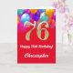 76th Birthday Red and Gold Colourful Balloons Birthday Card. For further customisation, please click the "Customise it" button and use our design tool to modify this template.