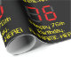 This silly and nerdy birthday-themed wrapping paper design features a large number "76" having a red seven segment digital display inspired appearance, along with the message "Happy 76th Birthday," and a customisable name in nerdy retro style yellow text, on a black coloured background. Birthday themed wrapping paper like this might be used when giving a gift or present in celebration of somebody’s 76th birthday. [~Z0000387]