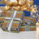 This scary and spooky Halloween birthday themed wrapping paper design features a large number "76". It also features the message "HAPPY BIRTHDAY,", plus a personalised name. There are also depictions of a ghost and a bat on the front. Wrapping paper like this might be fun to use when wrapping gifts that are being given to somebody whose seventy sixth birthday falls on October 31st (Halloween). [~Z0000411]