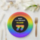 77th Birthday: Colourful Rainbow # 77, Custom Name Paper Plate