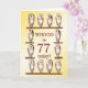 77th birthday card. Curious owls turning their heads to look at you and asking 'Who has a birthday today?'. A funny birthday card for anybody who likes owls. The owls shown are barn owls.