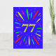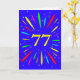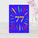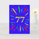 An explosive 77th birthday card! What a wonderful way to send birthday greetings. The number 77 in bright yellow with an explosion of bright colours and stars.