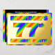 The front of this upbeat seventy-seventh birthday celebration foil invitation card features a personalised name, a large number “77th”, the message “BIRTHDAY PARTY!”, and a border, all featuring a vibrant, colourful, rainbow spectrum inspired gradient pattern. The back features personalised details about the event, such as the date, time, place/venue, and any other important information. Joyful, fun, customisable invitations like these might be used to invite guests to a birthday gathering being held to celebrate somebody’s 77th birthday. [~Z0000593]