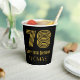 This 1920s-1930s style inspired and vintage look birthday-themed paper cup design features a large art deco inspired appearance number “78”, along with the birthday greeting message “Happy 78th Birthday,” and a customisable name. It also has a black-coloured background. 1920s-1930s style inspired birthday themed paper cups like this might be used at a party celebrating somebody’s 78th birthday. [~Z0000546]