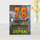 The front of this spooky and scary Hallowe’en themed birthday greeting card design features a large number “78”. It also features the message “HAPPY BIRTHDAY,”, plus an editable name. There are also depictions of a bat and a ghost on the front. The inside features a customisable birthday greeting message, or could perhaps be cleared and left blank if a message is to be written by hand instead. A custom birthday card like this might be a fun way to send birthday wishes to somebody who is celebrating their seventy eighth birthday and who was also born on October 31st (Halloween). [~Z0000547]