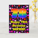 The front of this happy and colourful birthday-themed greeting card design features a large number “78” with a rainbow spectrum gradient inspired pattern, along with the message “Happy 78th Birthday,”, and a custom name. The background of the front features a pattern of purple, pink, and red heart shapes. The inside has a customised birthday greeting message, or could perhaps be cleared and left blank if a message is to be written by hand instead. A fun, customised birthday greeting card like this might be used to celebrate somebody’s seventy-eighth birthday. [~Z0000551]