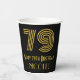 This Roaring Twenties inspired and vintage appearance birthday paper cup design features a large art deco inspired style number “79”, in addition to the birthday greeting message “Happy 79th Birthday,” and a customisable name. The background is coloured black. Roaring Twenties inspired paper cups like this might be fun to use at a birthday party in honour of somebody’s 79th birthday. [~Z0000546]