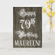 The front of this luxurious and fancy birthday themed greeting card design features the message “Happy 79th Birthday,” in elaborate script style text. The front also features a personalised recipient name, and a faux wood look inspired background pattern. The inside has a custom birthday greeting message, or could perhaps be cleared and left blank if a message is to be written by hand instead. An elegant, customised birthday greeting card like this might be sent in celebration of somebody’s seventy-ninth birthday. [~Z0000556]