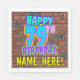 This fun birthday themed paper napkin design features the message “HAPPY 79TH BIRTHDAY,” having a vibrant, colourful, graffiti-inspired look, along with a personalised recipient name. The background features a pattern inspired by the look of a brick wall. Birthday themed paper napkins like this might be fun to use at a party being held for somebody who is celebrating their 79th birthday. [~Z0000534]
