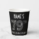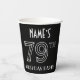 This stylish 1920s-1930s era inspired art deco look birthday paper cup design features a customisable name, and the message “79TH BIRTHDAY PARTY!”. The number “79TH” has a fancy geometric lined appearance. Paper cups like these might be used at a party held in celebration of somebody’s seventy-ninth birthday, or some other 79th event. [~Z0000658]