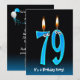Aqua and blue gradient background with eyeballs on candles for 79th Birthday party invitation.