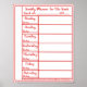7 Day Red Fabric Font Weekly Planner Print Poster