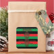 A Kwanzaa sticker that states the seven principles of the holiday and their meaning in the colours of green, black and red
