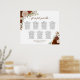 This rustic autumn floral seating chart features a hand painted watercolor design with roses in shades of rust orange, coral peach and burnt umber, surrounded by sprigs of eucalyptus leaves and autumn garden foliage. The title is printed in elegant script calligraphy and there is space for the names of the couple and wedding date below. Has seating assignments for up to 70 guests at 7 tables with 10 seats per table. Wonderful way to add elegance and style to your wedding reception while making it easy for your guests to find their assigned seats.
