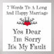 Featuring a delightful design our Funny Wedding Poster is sure to capture everyone's attention. The poster showcases seven words of humourous advice for a long and happy marriage: "Yes Dear, I'm Sorry, It's My Fault." These words serve as a lighthearted reminder of the importance of communication, understanding, and a good sense of humour in a relationship.