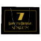This vintage appearance Roaring '20s style inspired birthday themed gift bag design features a large art deco look inspired number "7", the message "Happy 7th Birthday,", a custom name, and a border pattern consisting of thin lines. The background is coloured black. A gift bag like this might be used when wrapping presents being given to somebody in celebration of their seventh birthday. [~Z0000501]