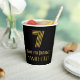This vintage style and Roaring Twenties inspired birthday themed paper cup design features a large art deco inspired look number “7”, in addition to the birthday greeting message “Happy 7th Birthday,” and a personalised name. It also has a black-coloured background. Roaring Twenties inspired paper cups like this might be fun to use at a birthday party in honour of somebody’s seventh birthday. [~Z0000546]