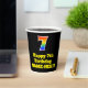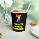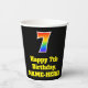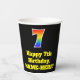 This fun and exciting birthday themed paper cup design features a large number “7” with a rainbow spectrum gradient inspired pattern, along with the message “Happy 7th Birthday,”, and an editable name. It also has a black-coloured background. Vibrant, colourful paper cups like this might be fun to use at a birthday party being held to celebrate somebody’s 7th birthday. [~Z0000537]