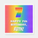 This exciting and vibrant birthday themed paper napkin design features a large number “7” with a colourful rainbow spectrum inspired gradient pattern, along with the message “HAPPY 7th BIRTHDAY,”, and a personalised recipient name. The background also features a fun multicolored rainbow spectrum inspired gradient pattern. Paper napkins like this might be used at a party held in celebration of somebody’s seventh birthday. [~Z0000573]