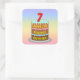 7th Birthday: Fun Cake and Candle + Custom Name Square Sticker