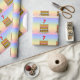 This cheerful and colourful birthday-themed wrapping paper design features a cartoon-style depiction of a three-tier birthday cake having a number-shaped candle on top showing the age “7“, along with the message “HAPPY 7TH BIRTHDAY,”, and a custom recipient name. The background has a multi-colour pastel rainbow spectrum inspired gradient pattern. Wrapping paper like this might be a fun way of wrapping a birthday present or gift being given to somebody who is celebrating their 7th birthday. [~Z0000622]