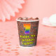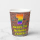 This vibrant and exciting urban graffiti and street art themed birthday paper cup design features a large number “7” having a colourful rainbow spectrum gradient inspired pattern. It also features the message “Happy 7th Birthday,”, and an editable name. The background features a brick wall pattern. Colourful, vibrant paper cups like this might be fun to have at a birthday party/celebration being held to celebrate somebody’s seventh birthday. [~Z0000543]