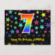 7th Birthday: Fun Stars Pattern, Rainbow 7, Name Postcard