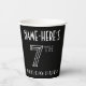 This luxurious Roaring Twenties era inspired art deco style birthday-themed paper cup design has an editable name, and the message “7TH BIRTHDAY PARTY!”. The number “7TH” has a fancy geometric lined look. Stylish birthday themed paper cups like these might be used at a party for somebody who is celebrating their seventh birthday, or some other 7th event. [~Z0000658]