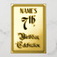 The front of this fancy and ornate seventh birthday party/celebration foil announcement/invitation design features the message “7th Birthday Celebration” in elaborate script-style text. It also features a custom name. The back features personalised details about the event, such as the date, time, venue, and any other important information. Opulent, elaborate, customisable invitations like these might be used to invite guests to a birthday celebration/party being held in celebration of somebody’s seventh birthday. [~Z0000596]