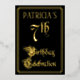 The front of this opulent and luxurious foil seventh birthday party/celebration invitation design features the message “7th Birthday Celebration” in elegant script-style text. It also has a personalised name. The background of the front is coloured black by default (although it can be customised to a different colour). The back features personalised details about the event, such as the date, time, location, and any other relevant information. Fancy, ornate, customised invitations like these might be used to invite guests to a birthday party being held to honour somebody’s 7th birthday. [~Z0000589]