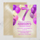 7th Birthday Pink Balloons Invitation