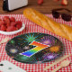 This cheerful, colourful, and fun paper plate design features a large number "7" having a rainbow spectrum gradient inspired pattern colouring. It also features a exciting and vibrant bursting celebratory fireworks inspired pattern. It has a black coloured background. Fun paper plates like this might be used at a party being held to celebrate somebody’s 7th birthday, a seventh anniversary, or some other 7th event. [~Z0000490]