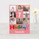 7th Happy Birthday Photo Collage Modern Pink Card with personalised name. For further customisation, please click the "Customise it" button and use our design tool to modify this template.