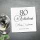 80 and Fabulous 80th Birthday Black Script napkin. Celebrate eight wonderful decades in timeless style. These "80 & Fabulous" cocktail napkins feature a chic, black-and-white script typography design that pairs perfectly with any party theme. Customize with the name of the guest of honor and birthday date. Text color can be changed in the design edit option.