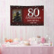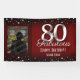 Elegant red 80th birthday banner with adjustable Happy Birthday and Custom Name Text. Pick your favourite photo and upload! Faux foil silver confetti and 80 number.