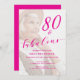 80 and Fabulous Birthday Pink Photo Overlay Script Invitation