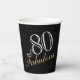 Elegant 80 and Fabulous White Script Birthday Paper Cups. Elegant design with trendy script in white and golden colours for a woman.