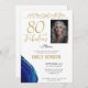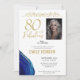 80 and Fabulous Gold Ornament 80th Birthday Photo Invitation. 80 and fabulous text in trendy golden script with photo and name. The invite has a gold ornament and beautiful blue marble. Personalise it with your photo and details, and make elegant surprise birthday party invitation for woman`s birthday party.