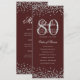 80 Birthday Program Silver Confetti Menu Burgundy Invitation