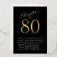 Celebrate their 80th birthday in style with this luxurious black with gold foil 80th birthday party invitation! Perfect for a grand turning 80 milestone celebration, this elegant invitation features a modern black and gold design that will be sure to impress your guests. An ideal way to begin the perfect 80th birthday party celebration!