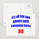 It's all fun and games until someone turns 80. Humourous 80th birthday design for the 80 year old who has a sense of humour about their age. Makes a great 80th birthday gift.