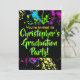 Have a fun 80s and 90s theme graduation party for guys or girls! Hip, fresh and awesome paint splatter design in vibrant, bright colours of pink, green, blue, and yellow against a high-contrast black background. Great for a retro 80s eighties theme party, paint party, colour splash, colour run or paintball theme. Abstract expressionism artwork in a super bright green colour scheme. Customise it with your own name or text!