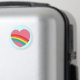 This Eighties classic design features a big pink heart with a colourful rainbow across it. The background is currently light blue, but you can change it to whatever you'd like.