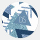 80s Luxe Abstract | Turquoise and Navy Monogram Classic Round Sticker