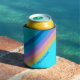 80s Neon Ocean Sky Stripes with Name Can Cooler