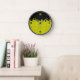 Custom wall clock for a computer geek or video gamer with yellow pixels grid. The black background can be changed to any other colour.