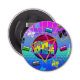 Very cute and compact little bottle opener. Also very fond of the magnet, both for sticking to the fridge and holding on to the bottle cap when trying to open it. Good quality print. As pictured.
