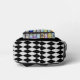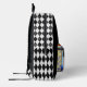 .: This backpack has a fun design featuring bold, primary colours along black and white argyle sides and upper and cassette design on pocket.