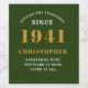 A personalised classic label design for that birthday celebration for a special person born in 1941 and turning 80. Add the name to this vintage retro style green, white and gold design for a custom 80th birthday gift. Easily edit the name and year with the template provided. A wonderful custom birthday gift. More gifts and party supplies for that 80th party celebration available in the store.