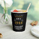 For those born in 1946 and celebrating their 80th birthday we have the ideal birthday paper cups. The black background with a white and gold vintage typography design design is simple and yet elegant with a retro feel. Easily customize the text of this birthday gift using the template provided. More gifts and party supplies available with the "Legendary" design in the store.